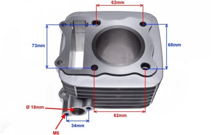 Válec pro motory Suzuki GN125. Vrtání válce 57mm. Včetně pístní sady a těsnění.